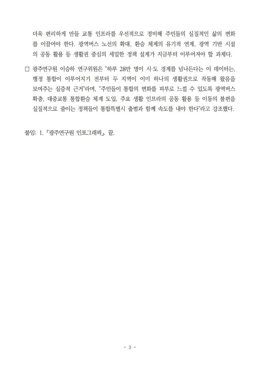 파일 #1 : [광주연구원 보도자료] 광주·전남, 하루 28만 명 오가는 하나의 광역생활권.hwp