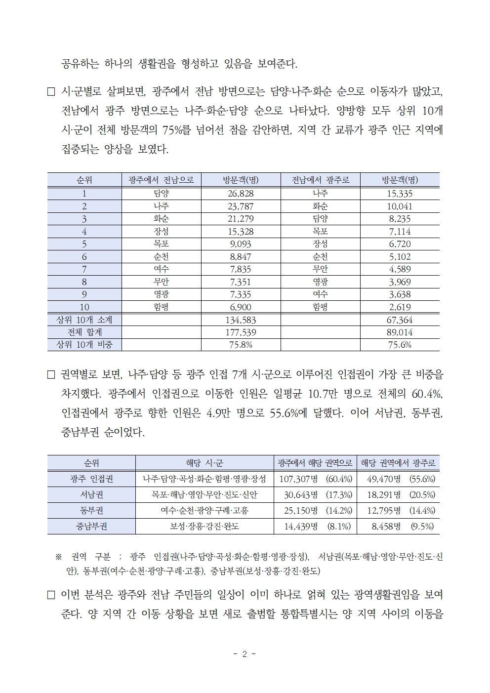 광주·전남, 하루 28만 명 오가는 하나의 광역생활권