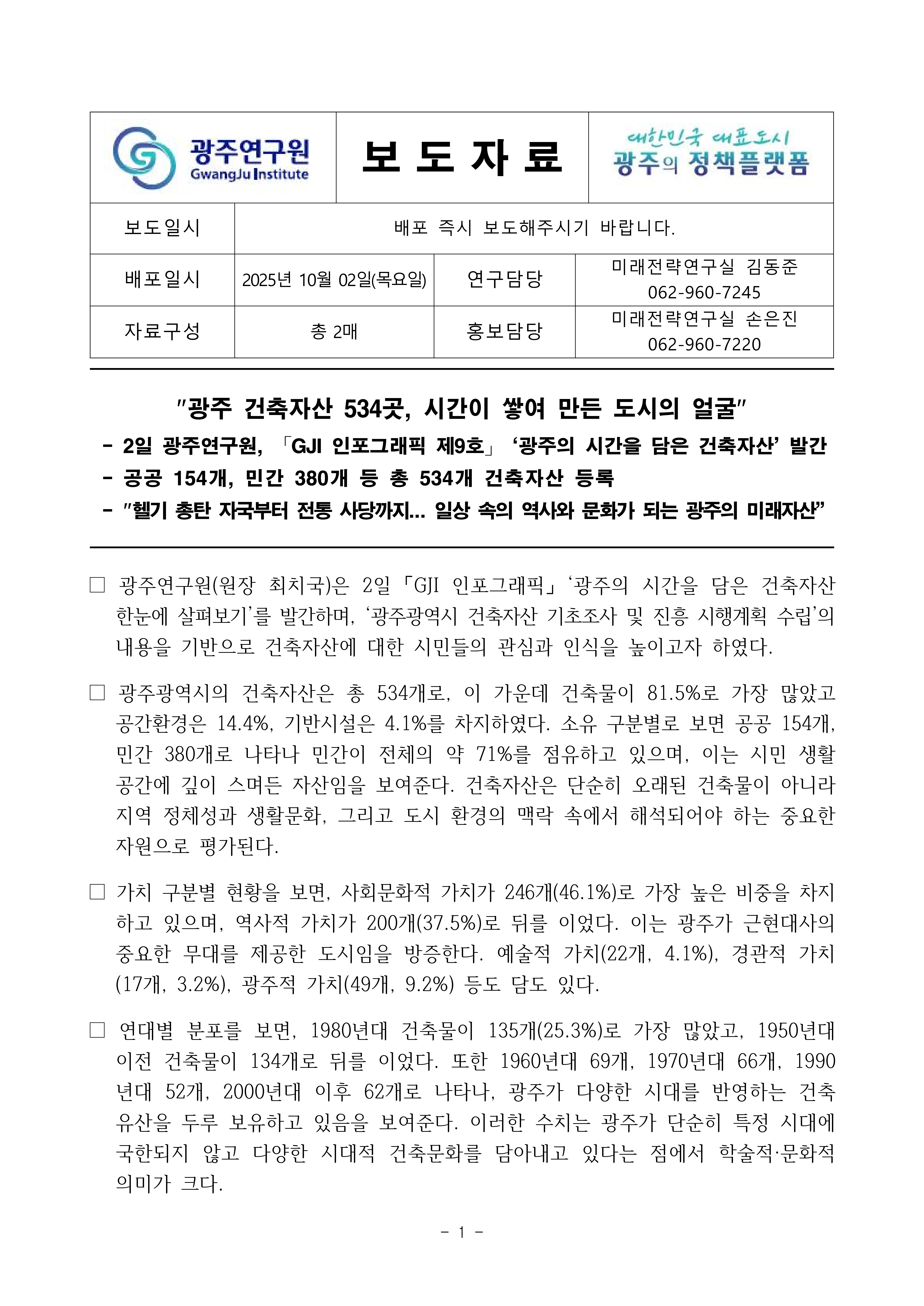 "광주 건축자산 534곳, 시간이 쌓여 만든 도시의 얼굴"