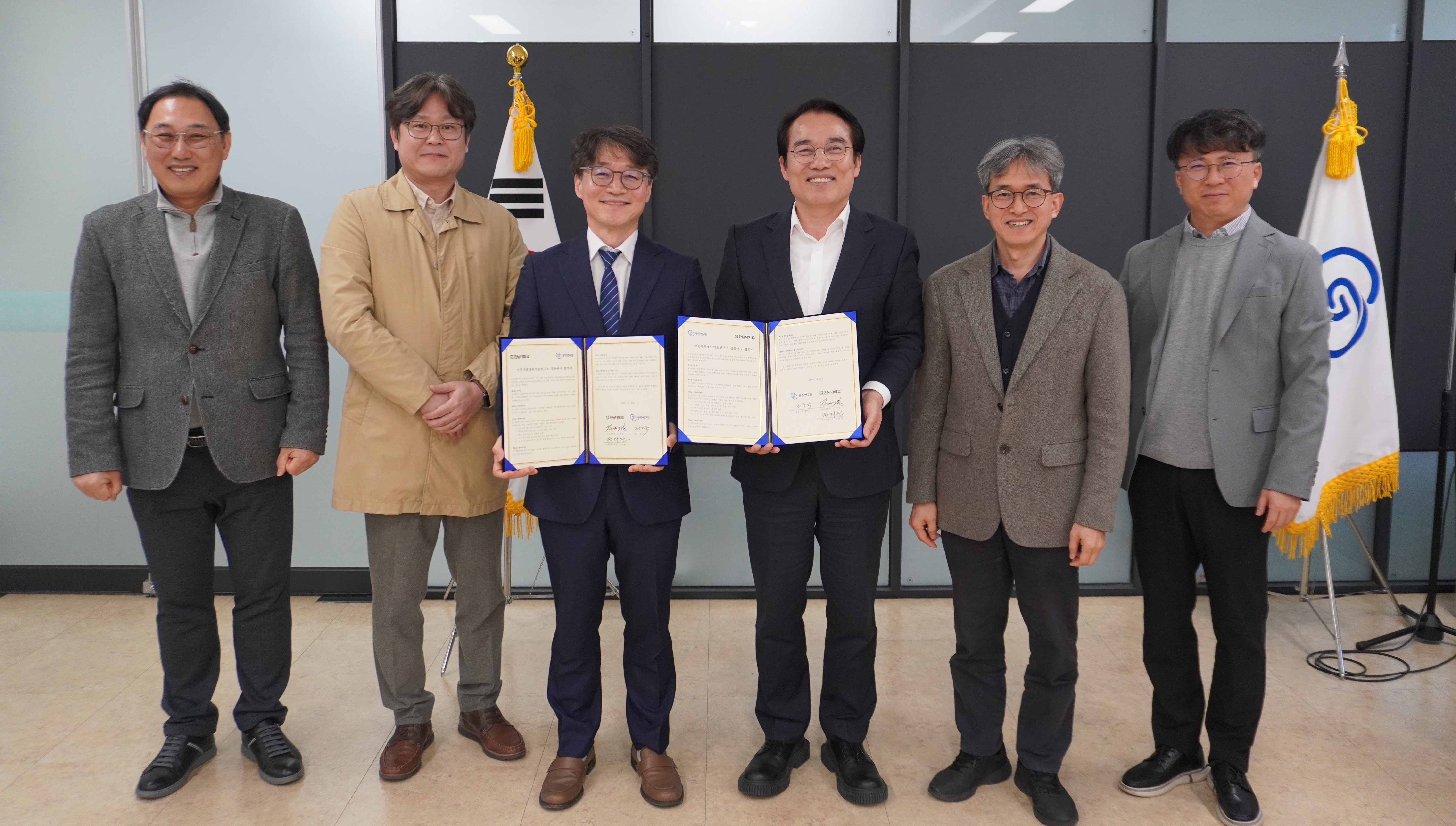3월 12일(목) 광주연구원 1층 TN컨퍼런스룸에서 공동연구 협약을 체결했다. 이번 협약은 두 기관의 교육·연구 역량을 결합해 지역대학과의 공동연구체계를 구축하고, 학생 교류를 지원하며 인문사회 연구 문화의 확산을 연구하기위해 마련됐다. 광주연구원은 이번 공동연구 협약을 바탕으로 전남대학교 인문사회대학기초연구소와의 긴밀한 협력을 이어가며 지역 현안을 반영한 융합연구 성과를 창출해 나갈 예정이다.
