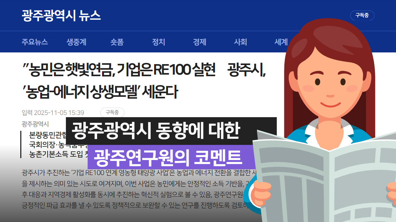 광주광역시의 주요 정책 및 산업 동향에 대한 보도자료와 언론보도 등을 중심으로, 이에 대한 광주연구원의 입장과 정책적 시사점을 제시합니다. 지역 현안에 대한 전문적 분석과 대응 방향을 공유함으로써, 지역 싱크탱크로서의 역할을 수행하고자 합니다.